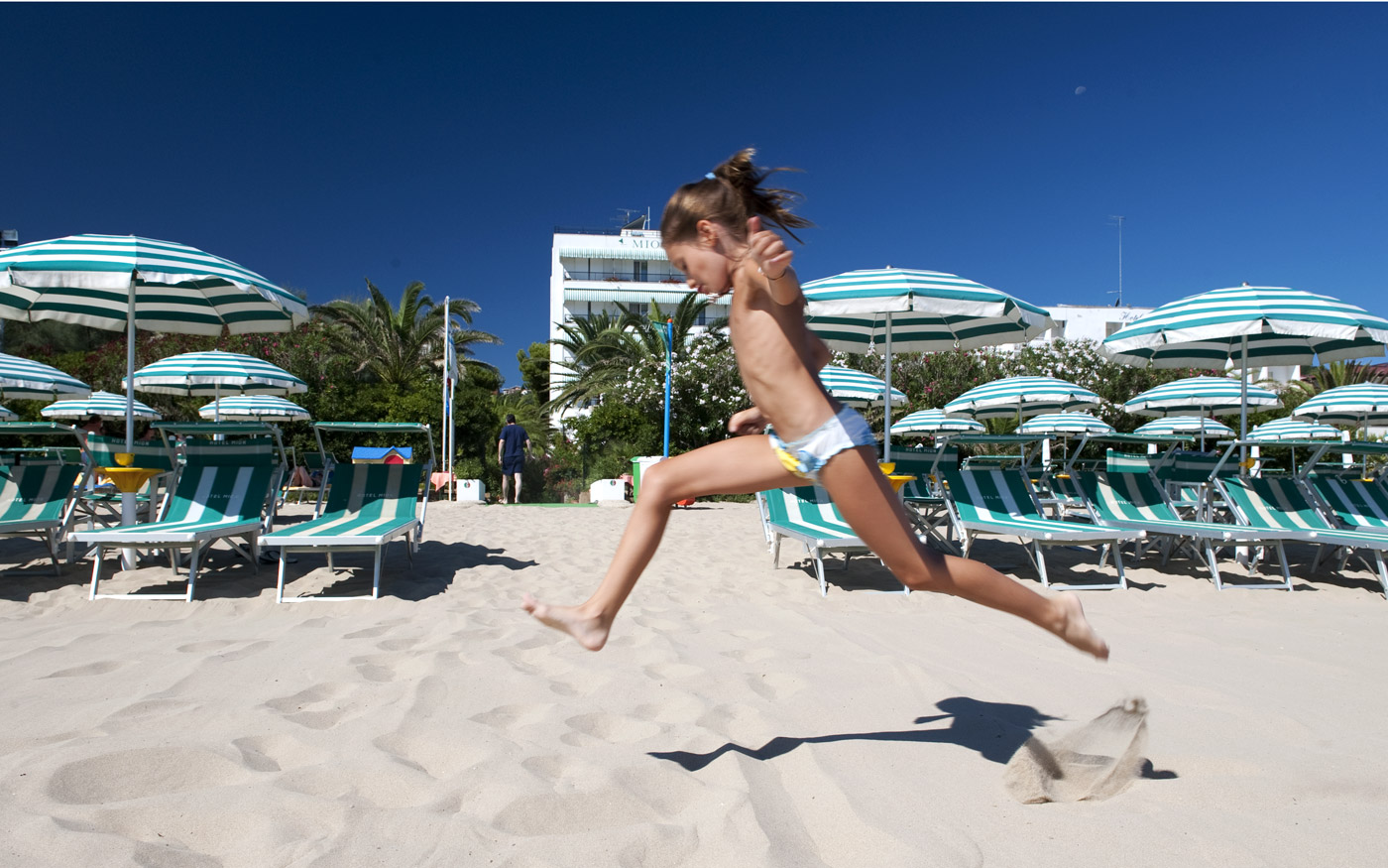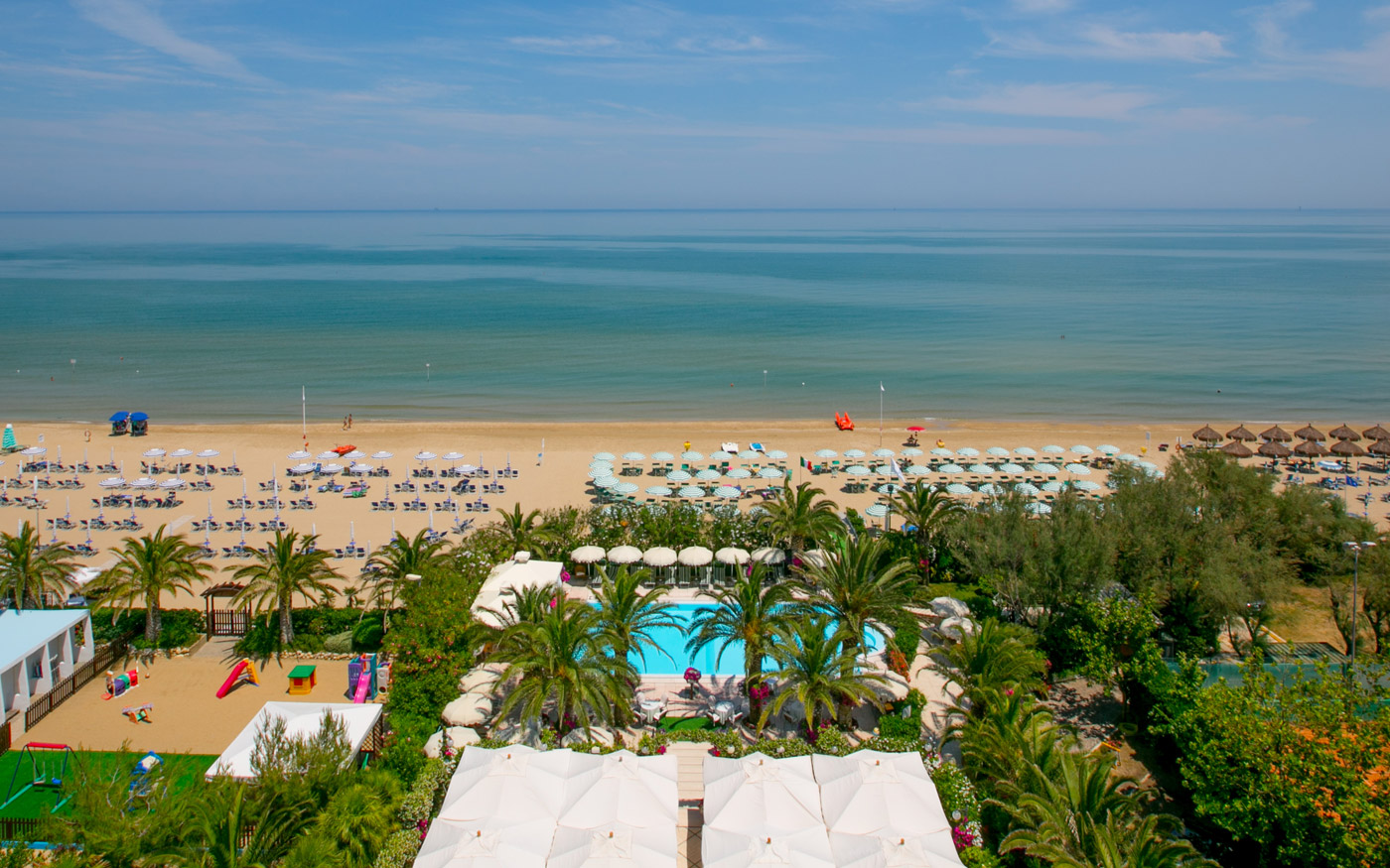 Nasz hotel leży bezpośrednio przy szerokiej i spokojnej prywatnej plaży, znajdującej się tylko pięćset metrów od morskiej strefy chronionej Torre del Cerrano, nad którą wznosi się antyczna forteca – dzisiaj siedziba Centrum Biologii Morza.