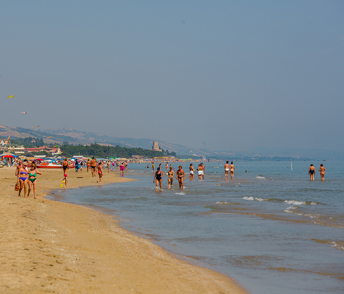 L'arenile viene curato giornalmente dai nostri addetti ed è attrezzato con ombrelloni, sedie a sdraio e lettini. Per il massimo del comfort il servizio bar è esteso anche alla spiaggia. Il nostro mare è particolarmente adatto alla balneazione degli ospiti più piccoli in quanto la profondità aumenta gradualmente ed è pertanto molto sicuro. Sono a disposizione dei clienti anche pattini e canoe.